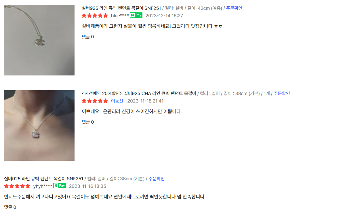 목걸이 길이 38cm ~ 44cm (+ 꼬리체인 3cm)