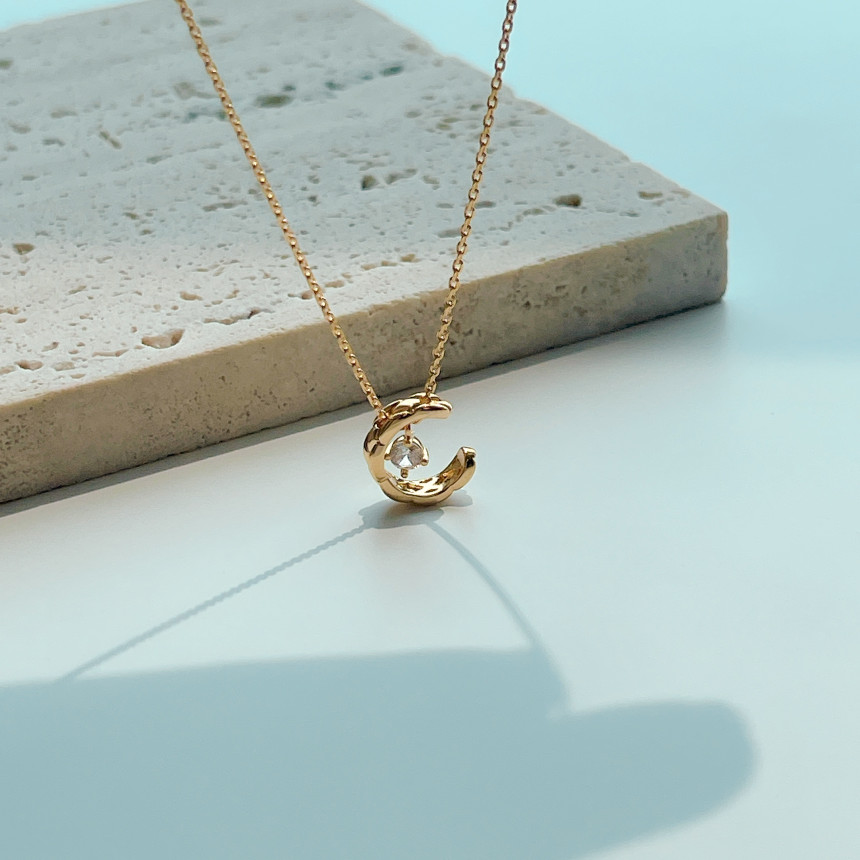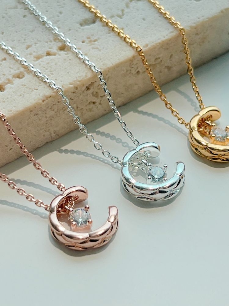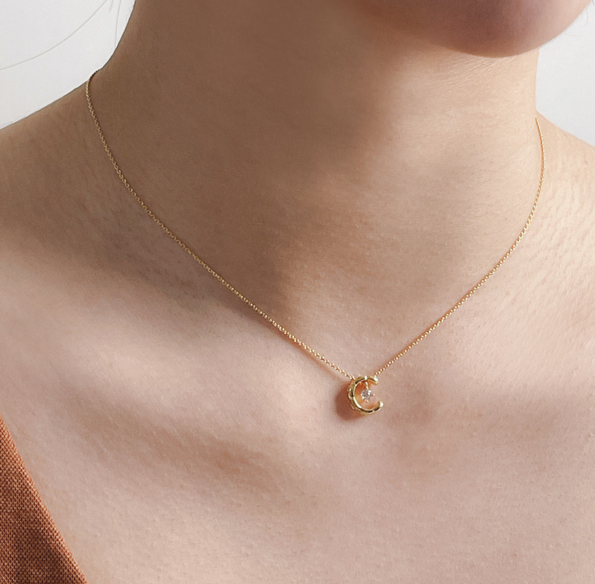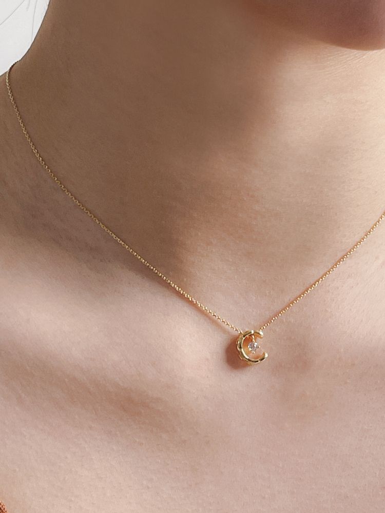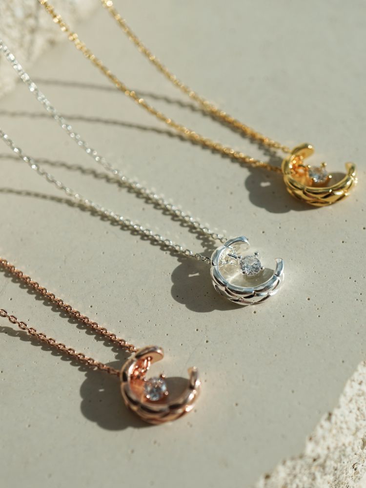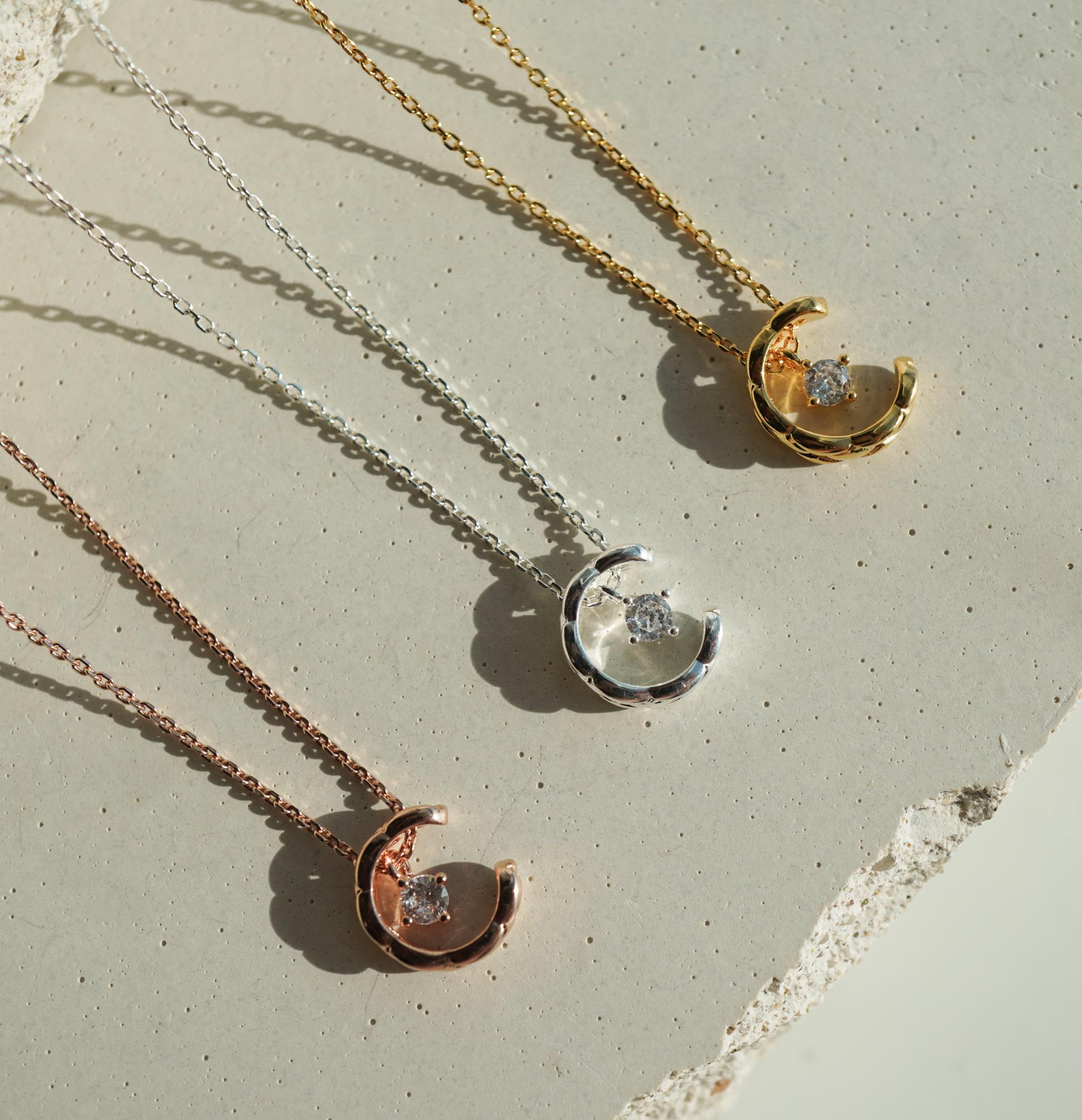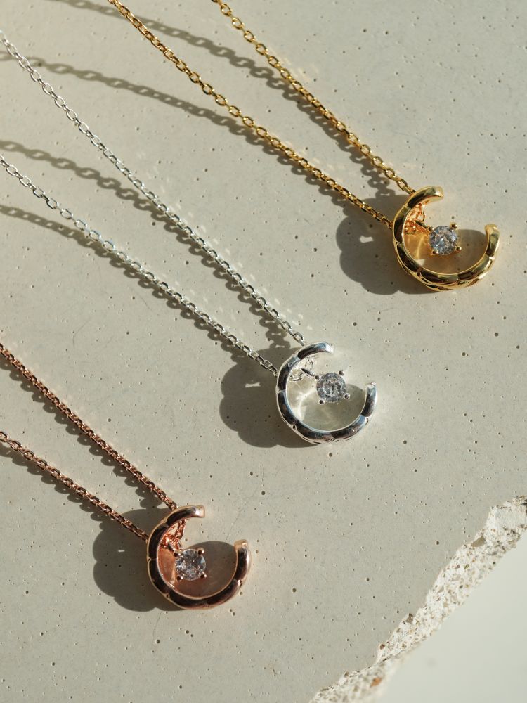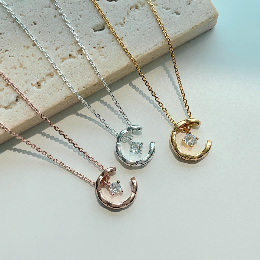 반짝이는 보석을 감싸고 있는 달모양의 펜던트가