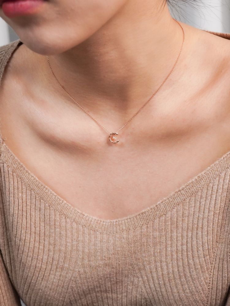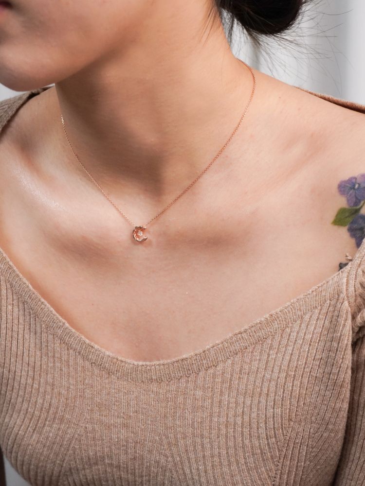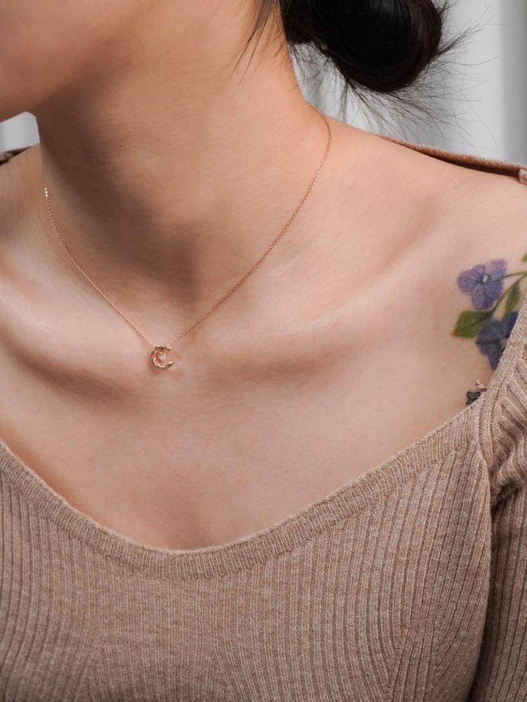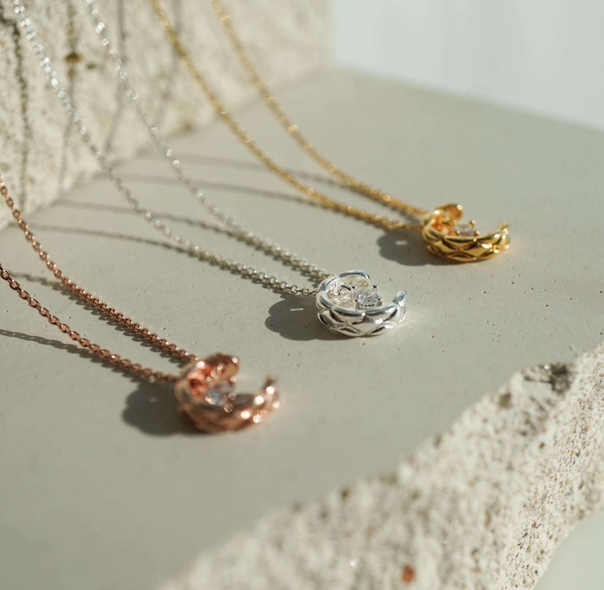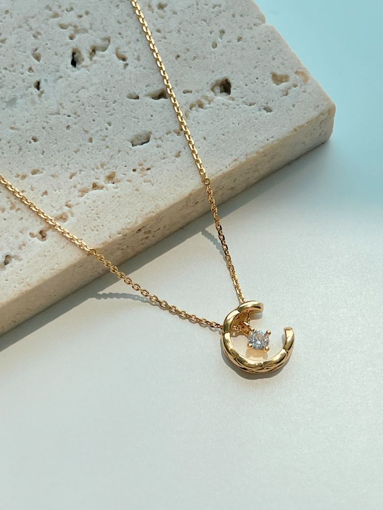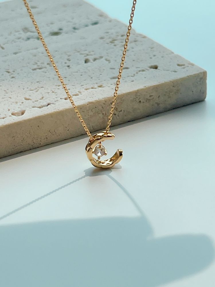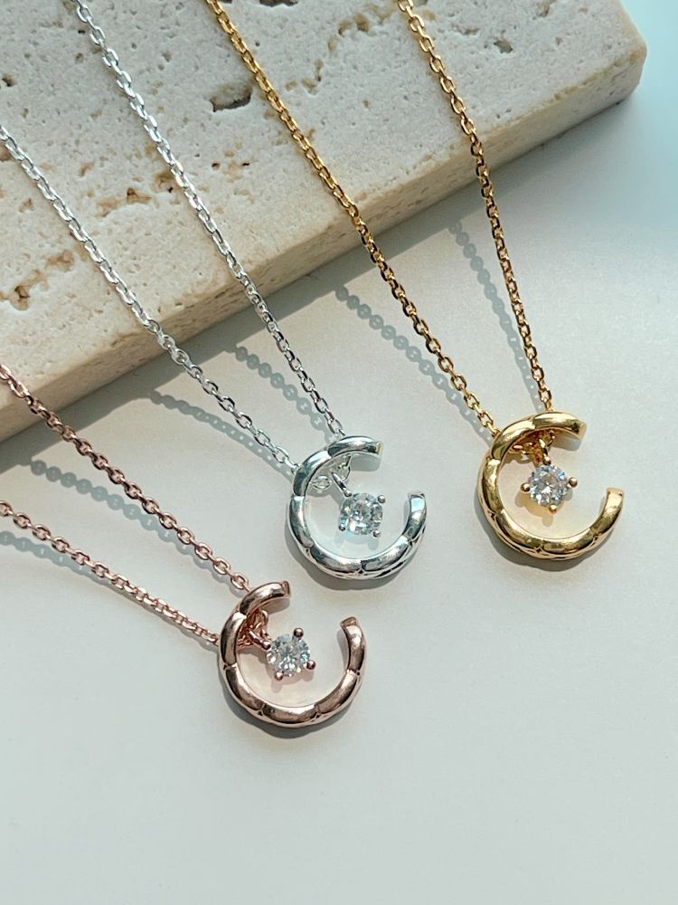 반짝이는 보석을 감싸고 있는 달모양의 펜던트가