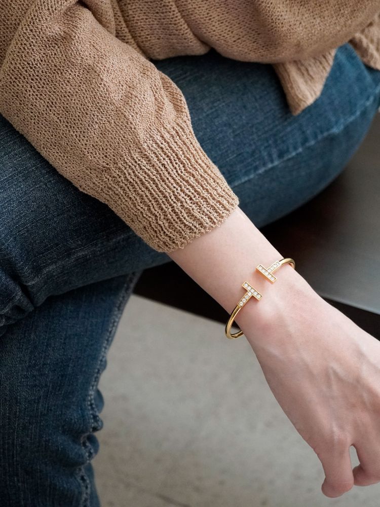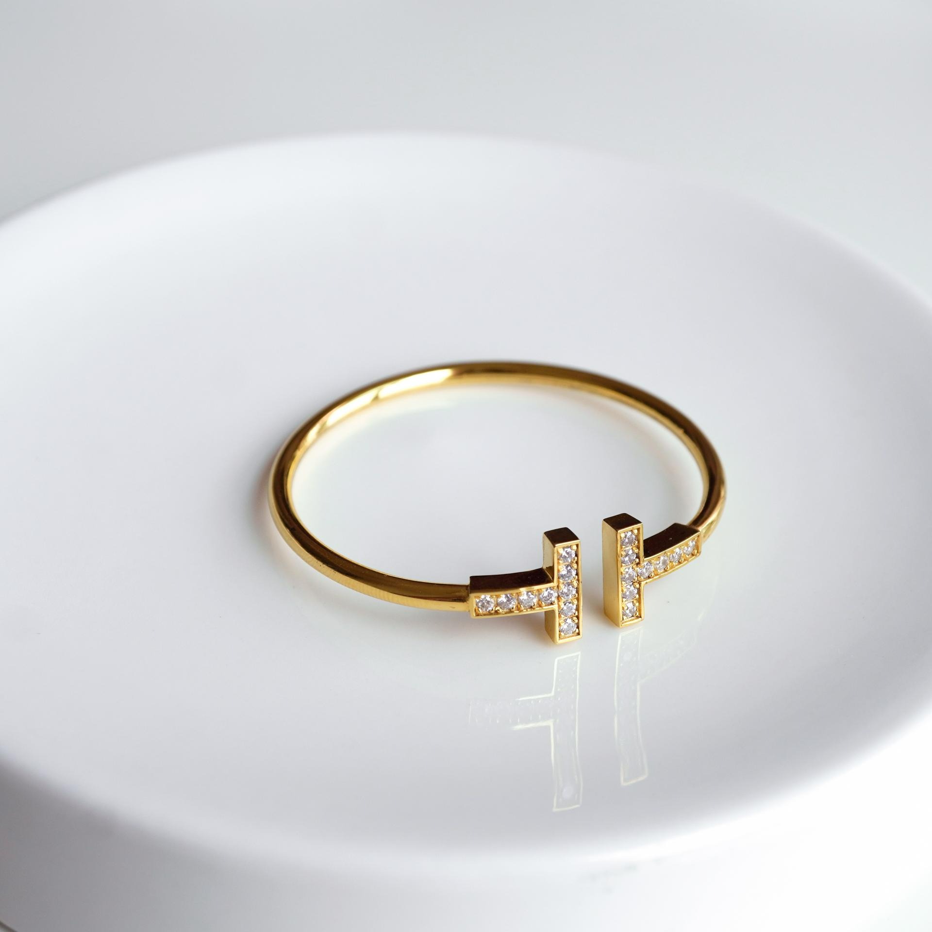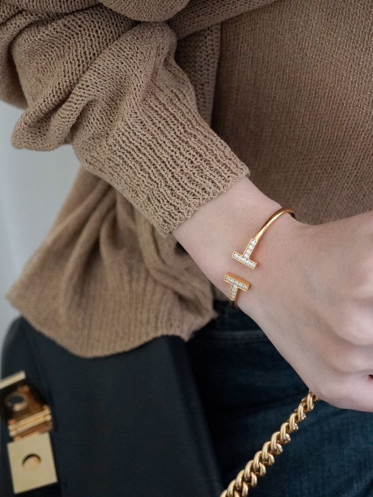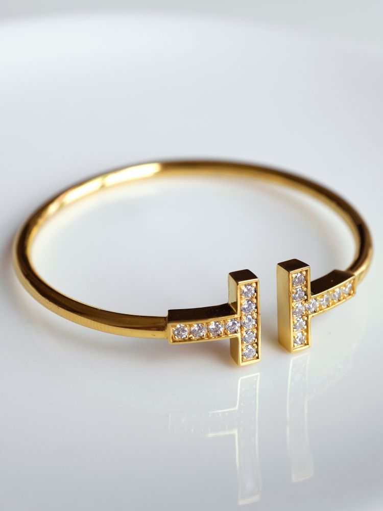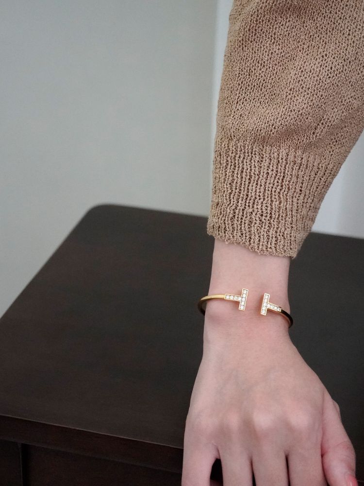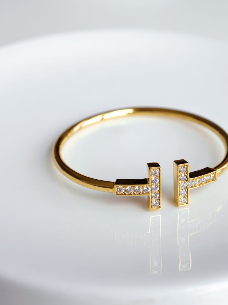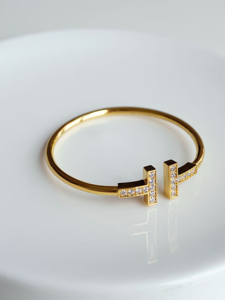 큐빅을 양쪽으로 세팅한 와이어뱅글로