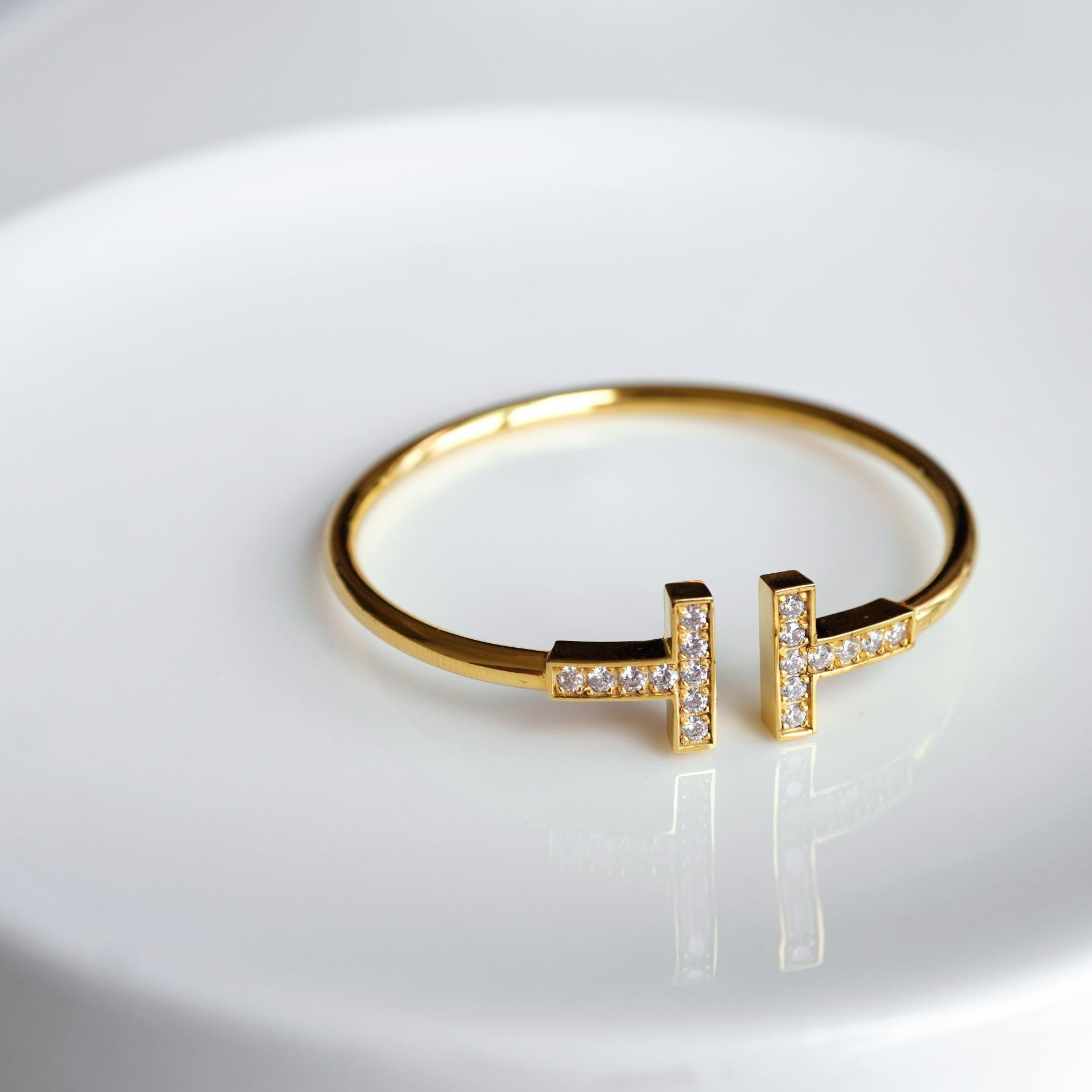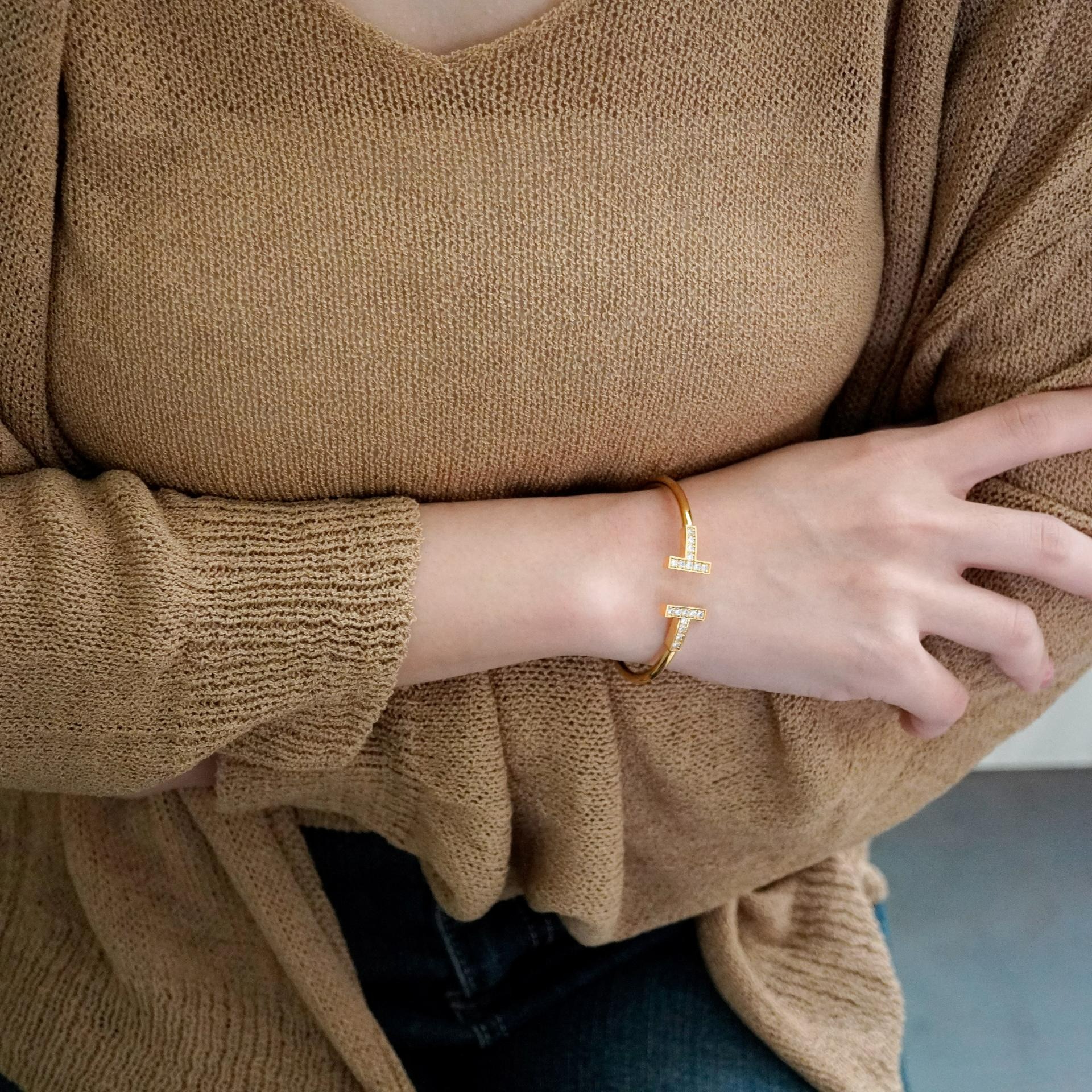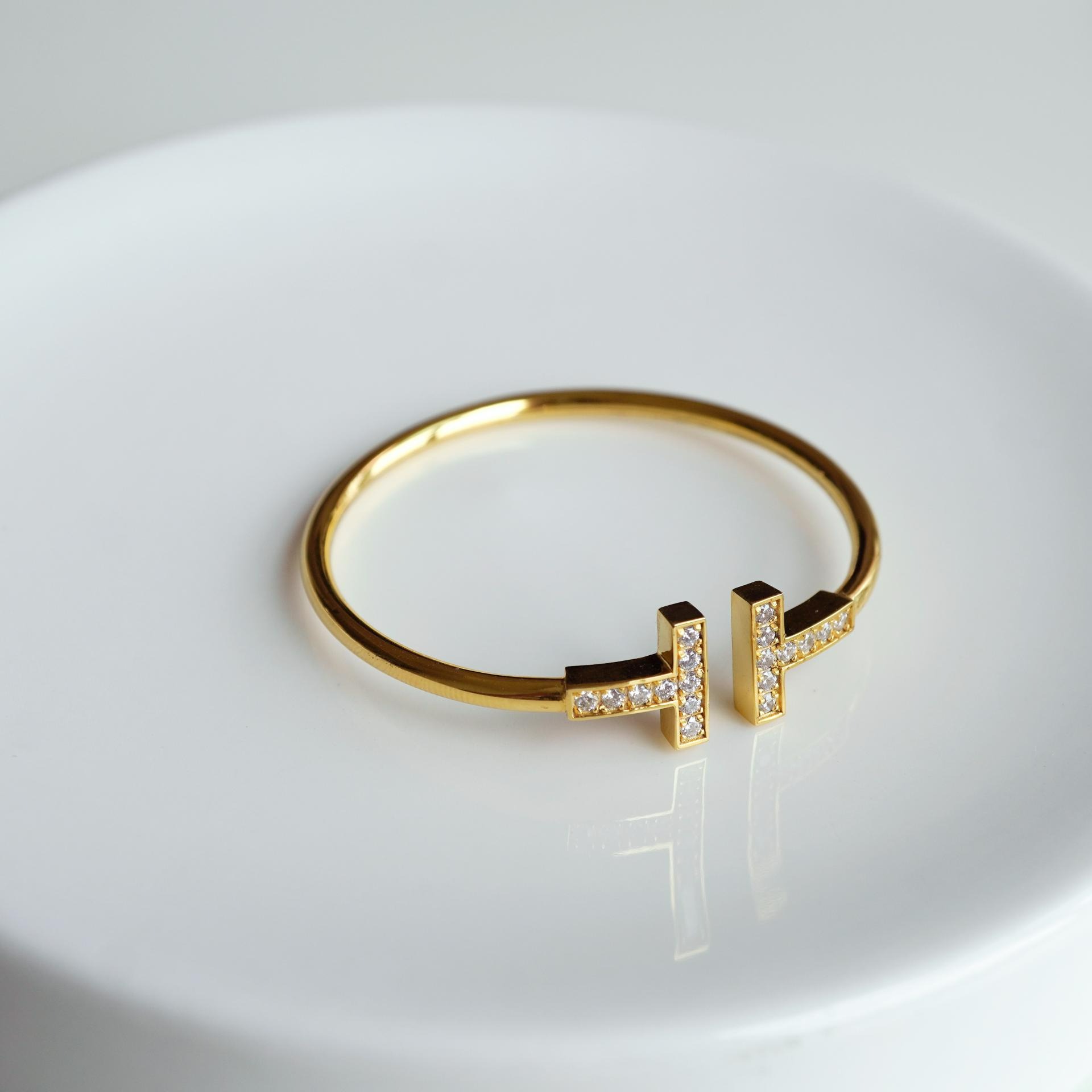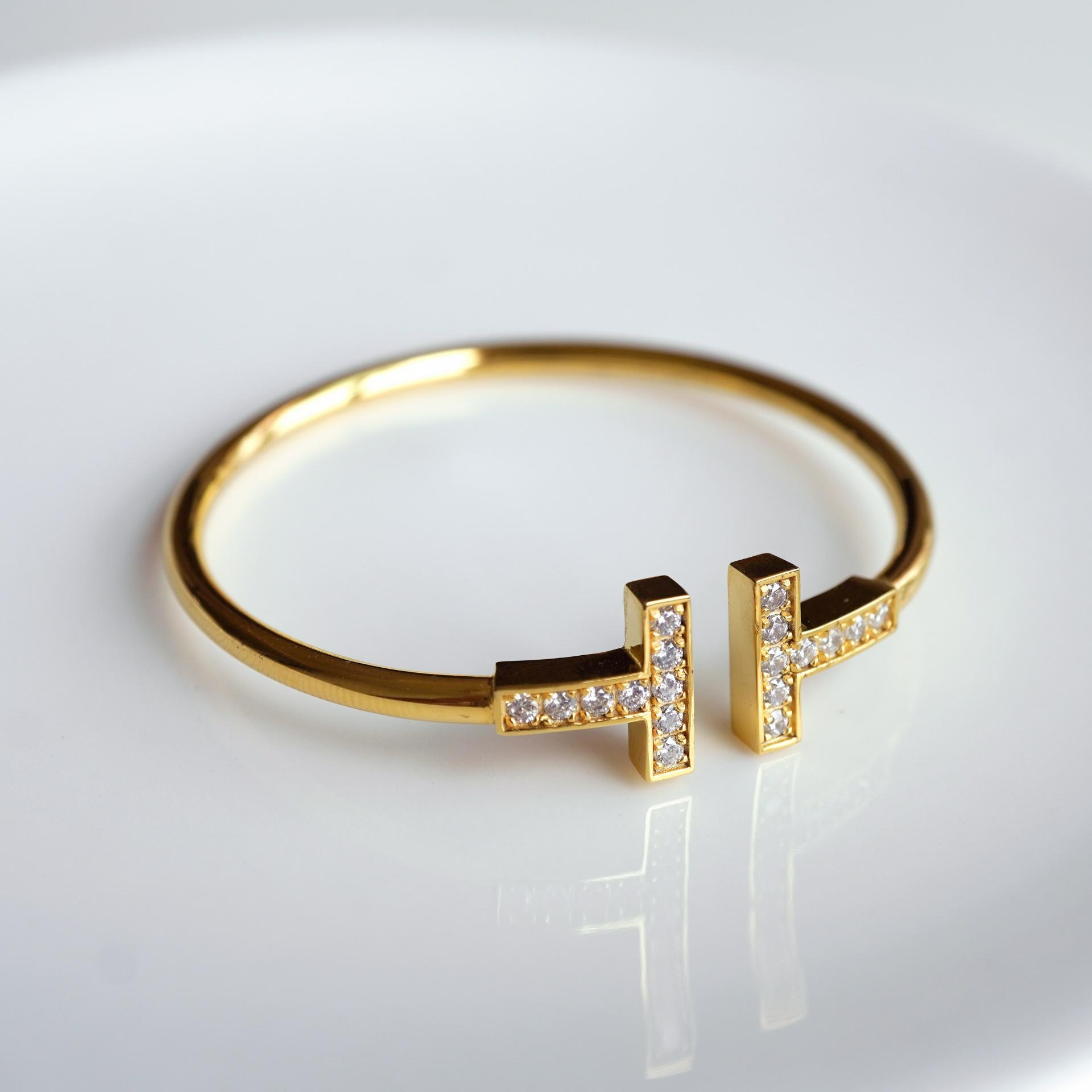 큐빅을 양쪽으로 세팅한 와이어뱅글로