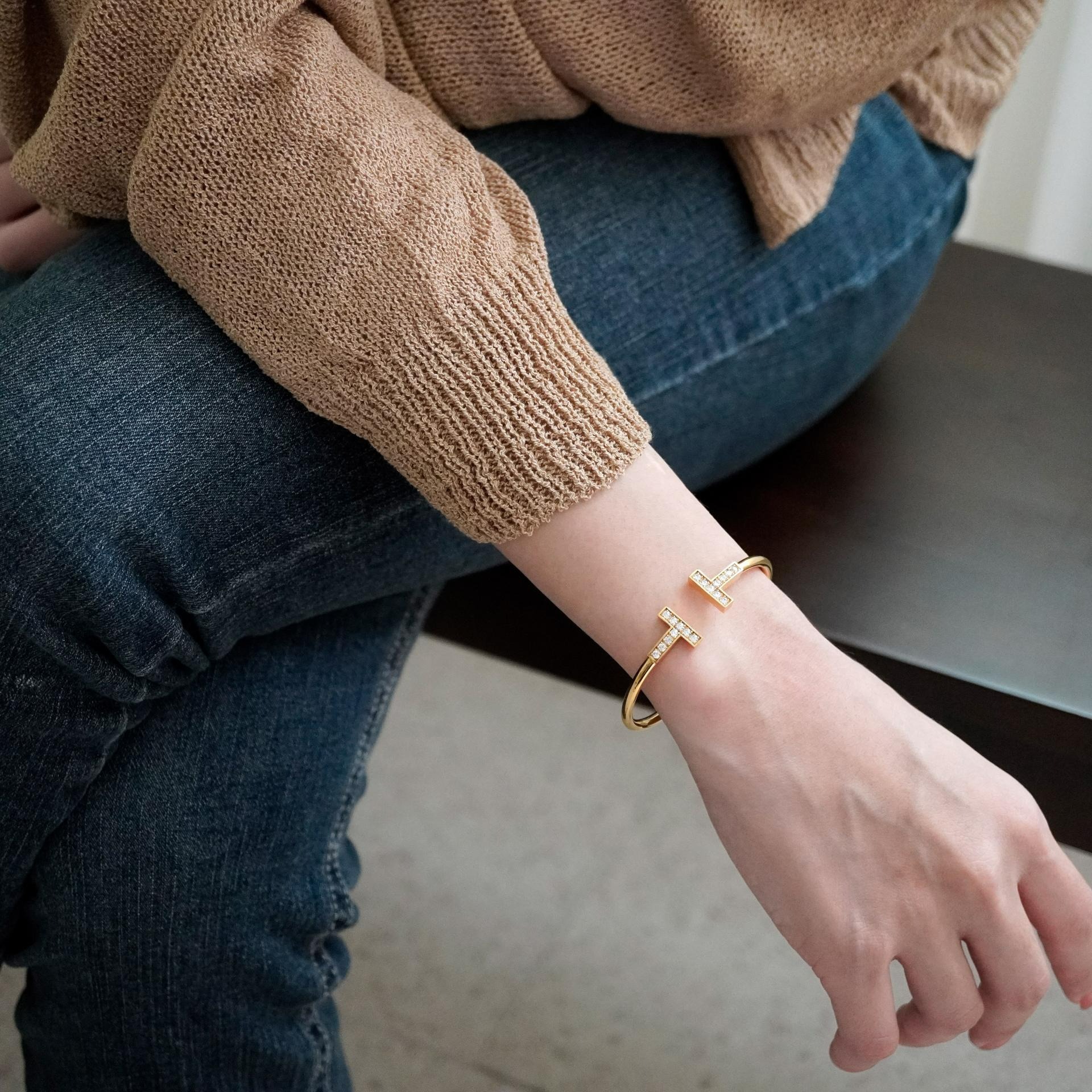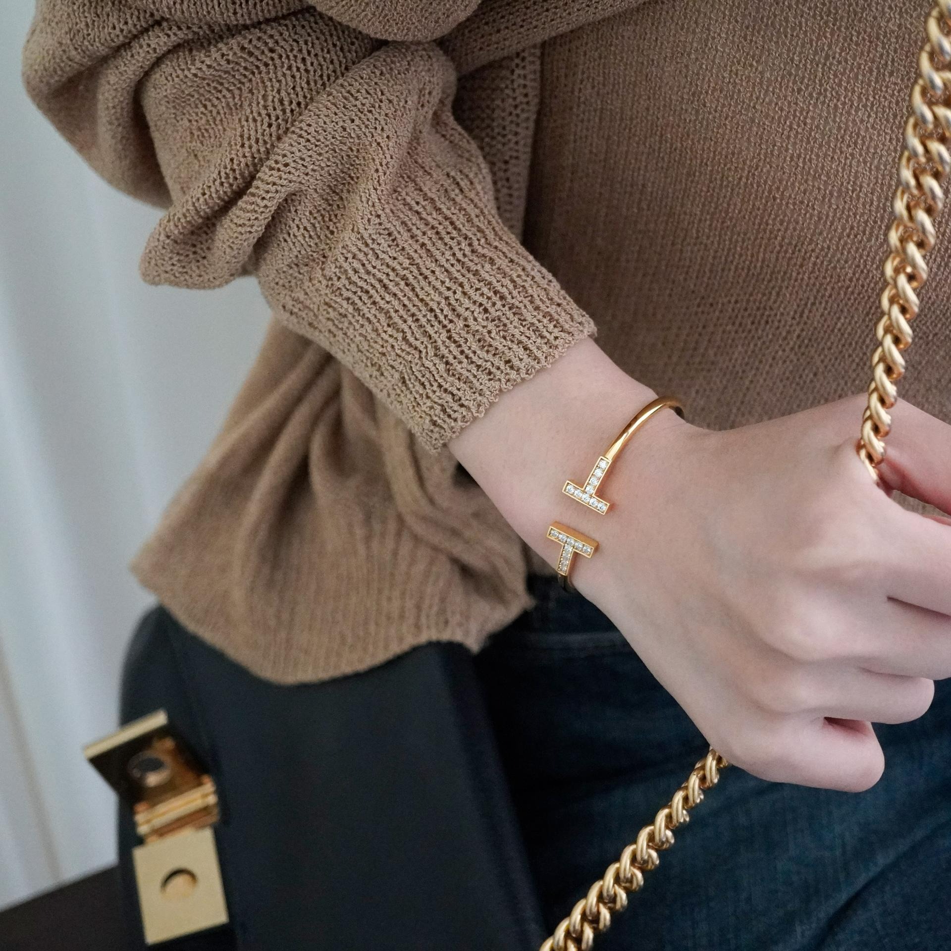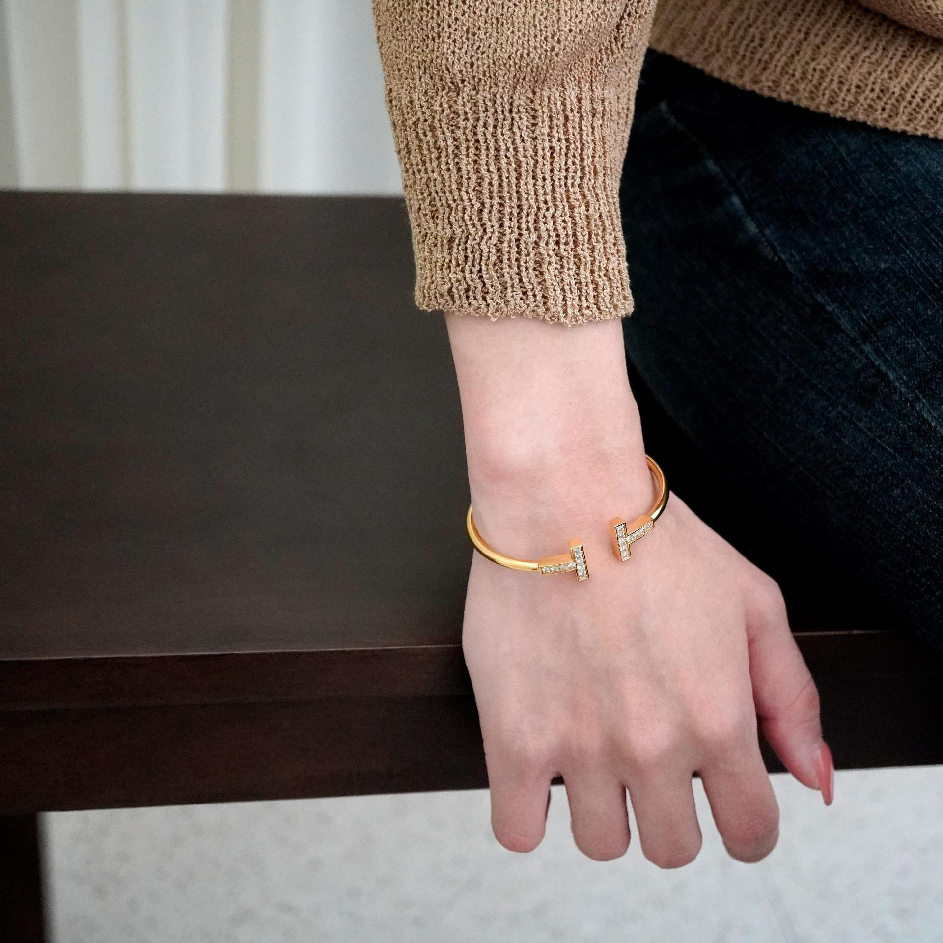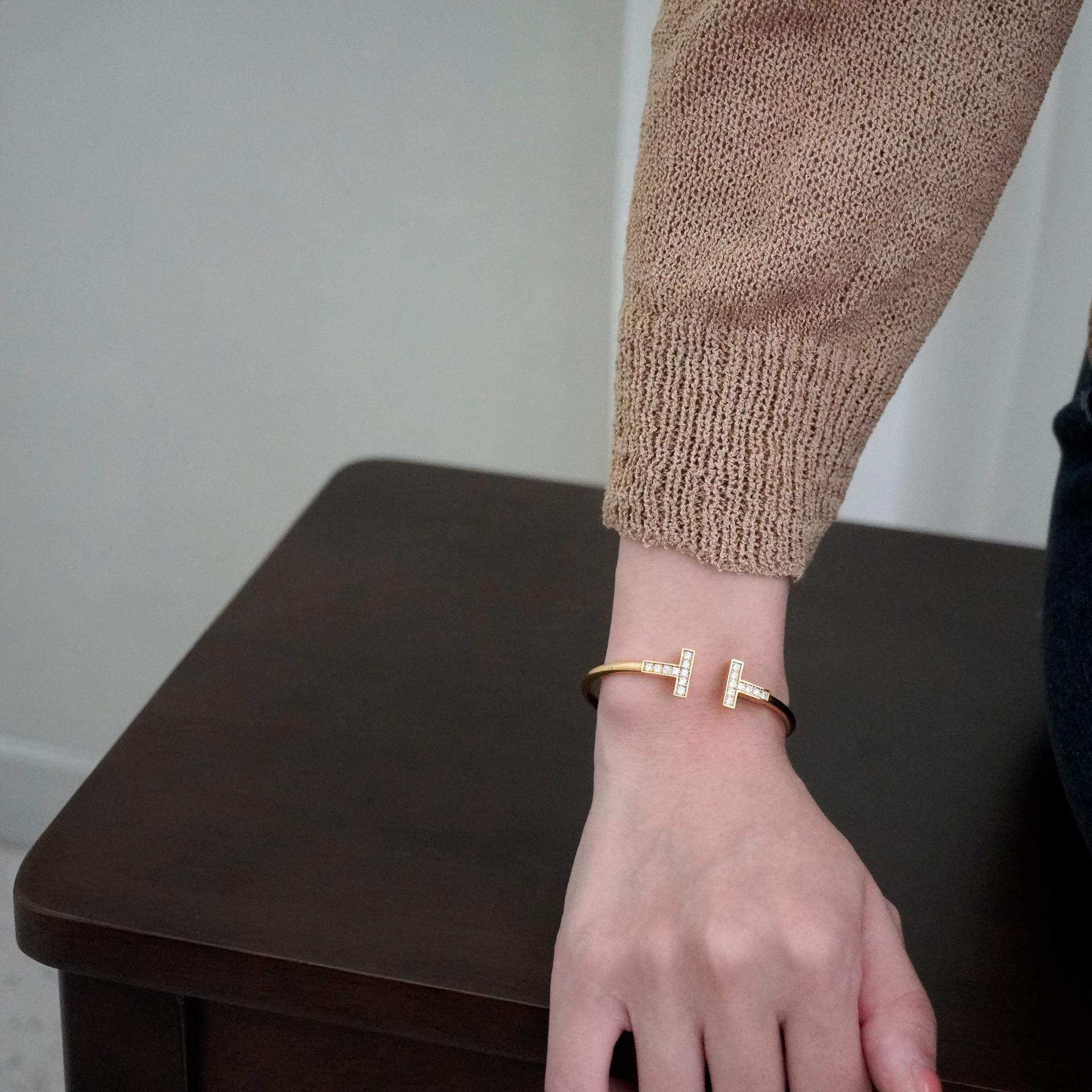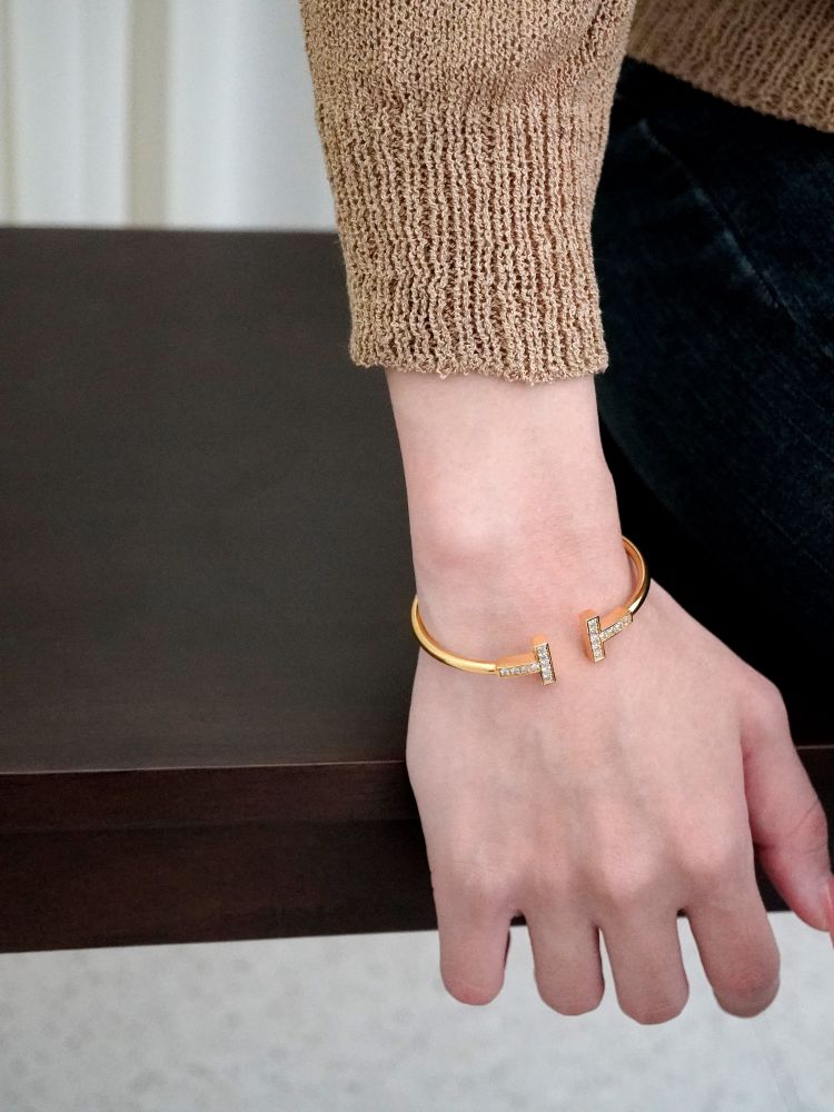 큐빅을 양쪽으로 세팅한 와이어뱅글로