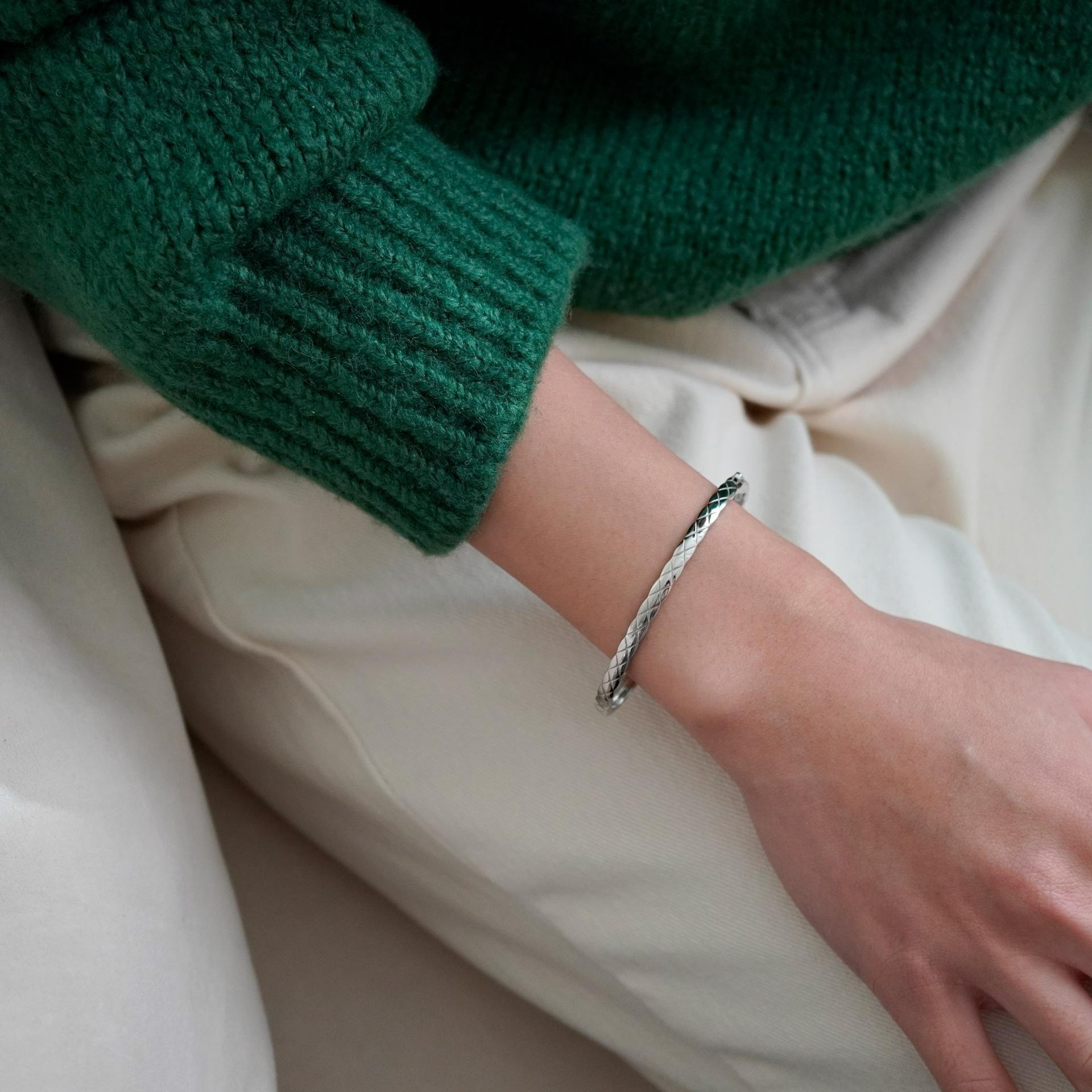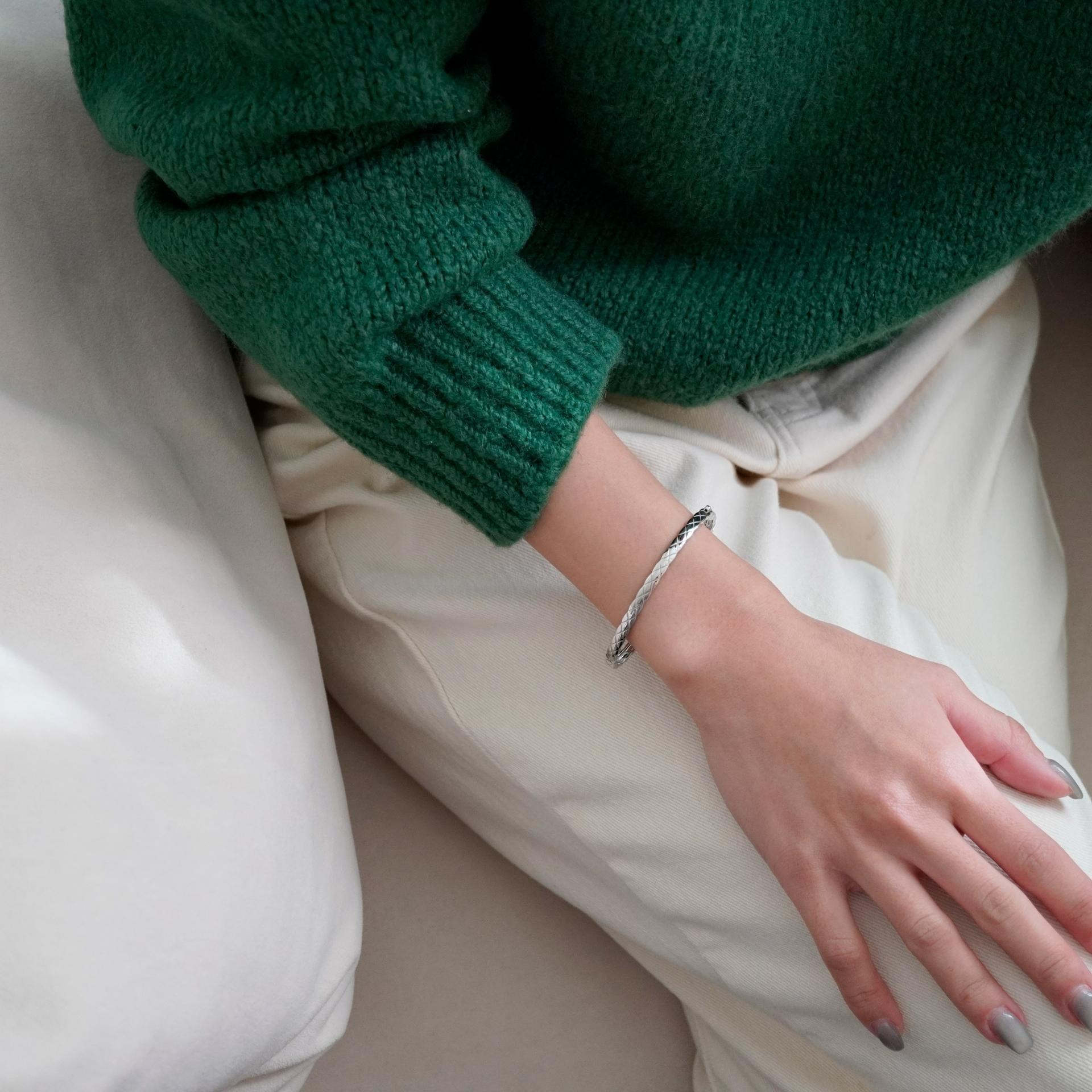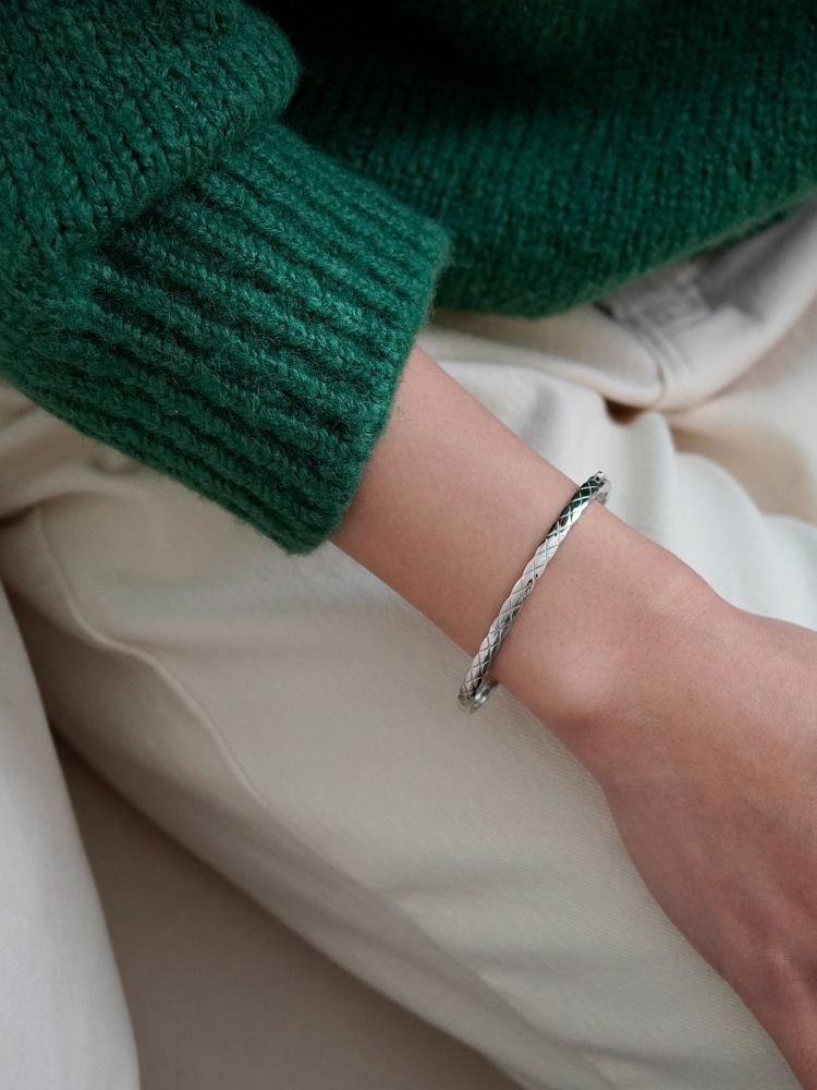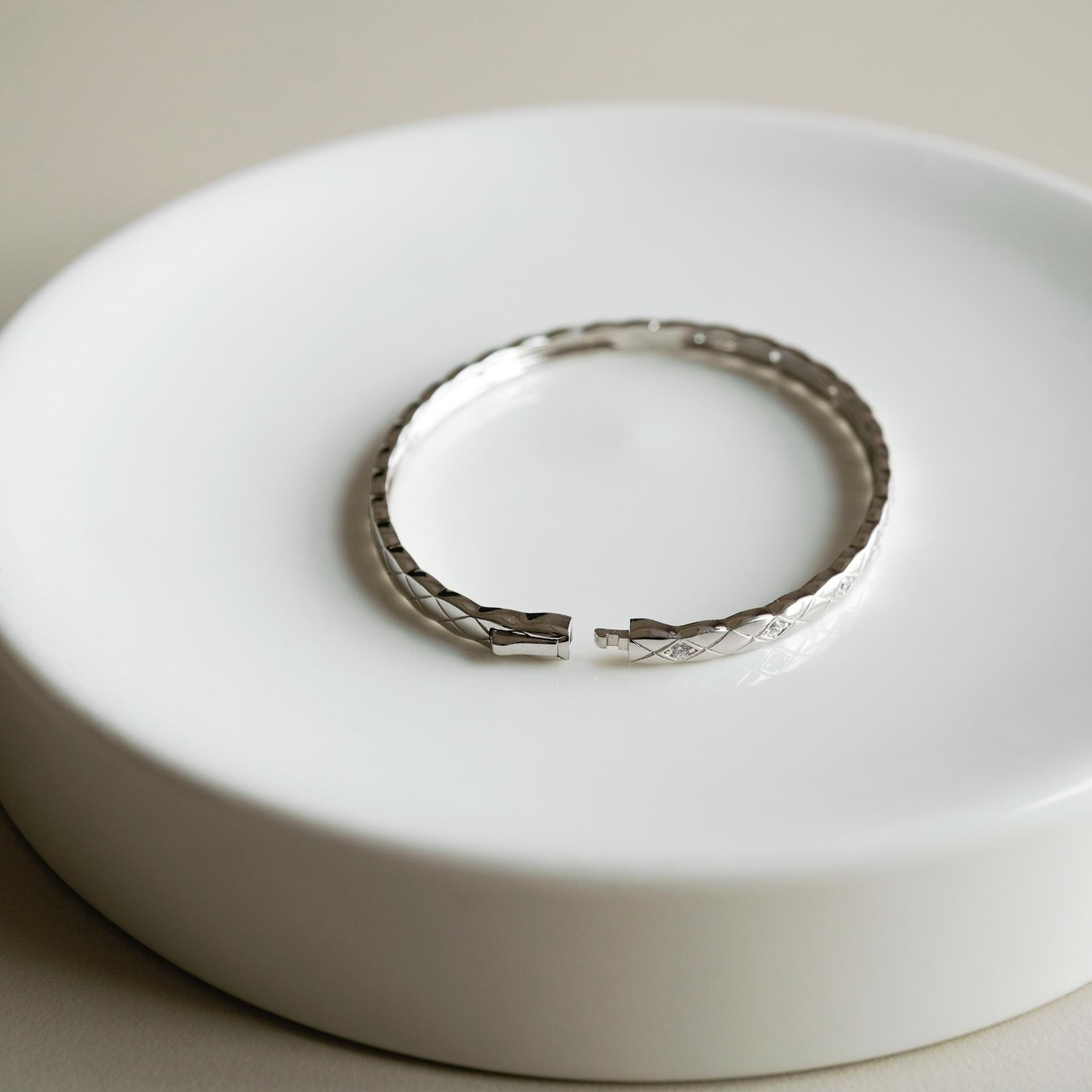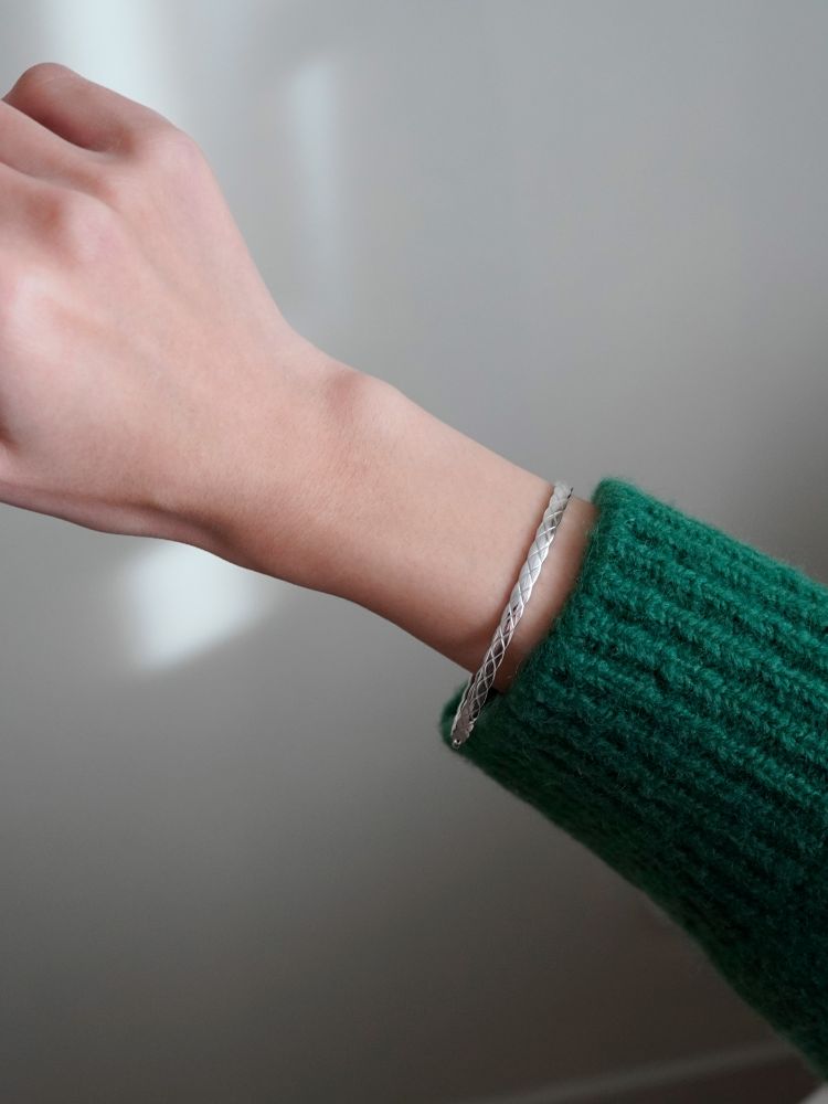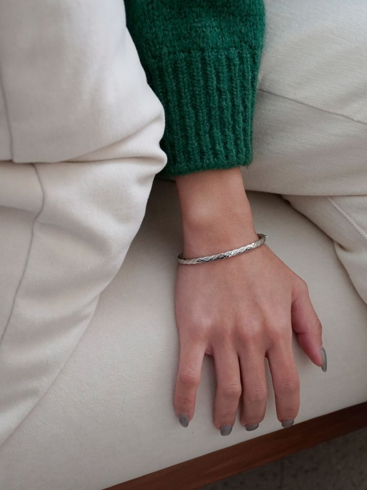 얇은 엠보라인 원터치 뱅글로