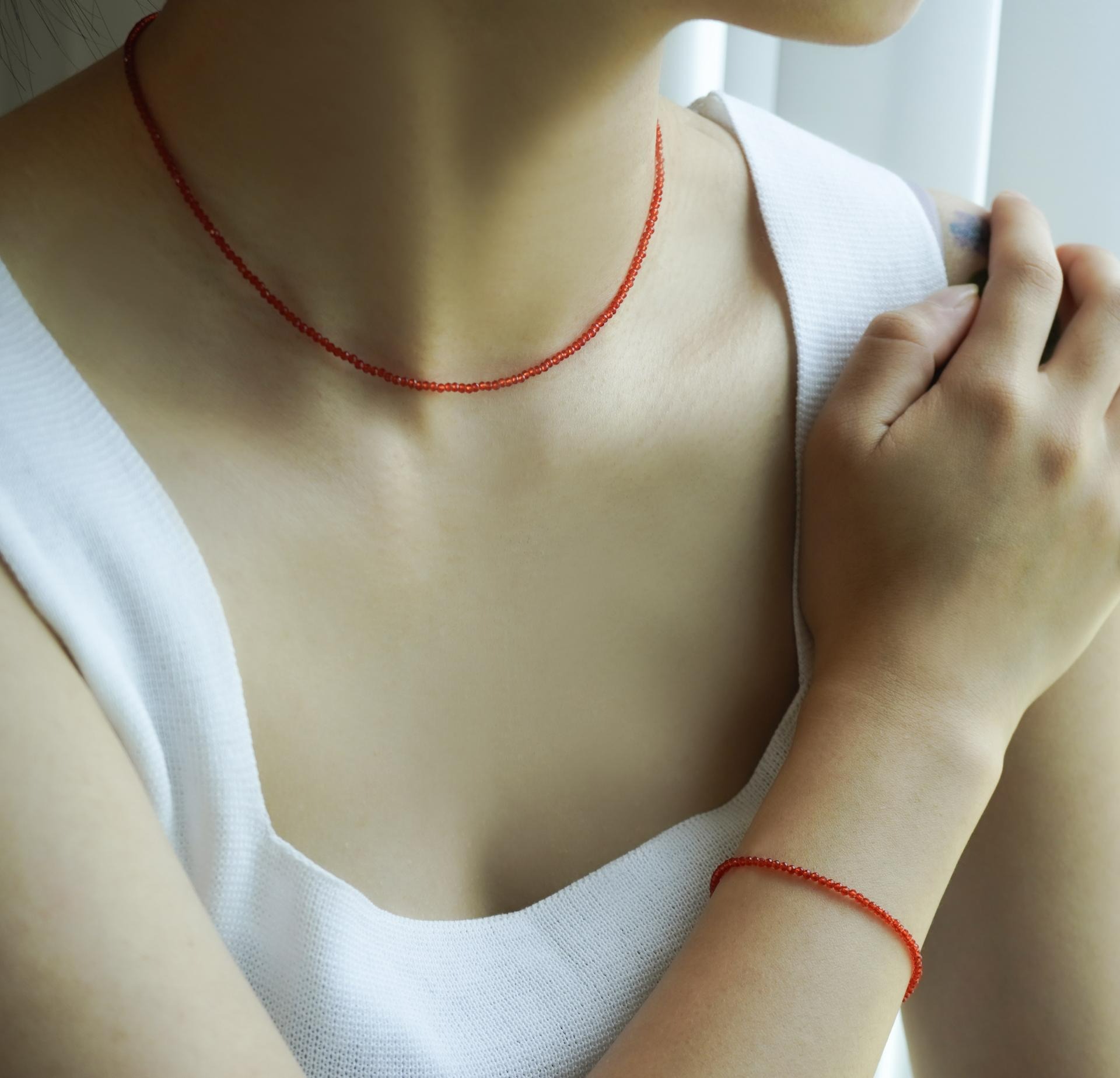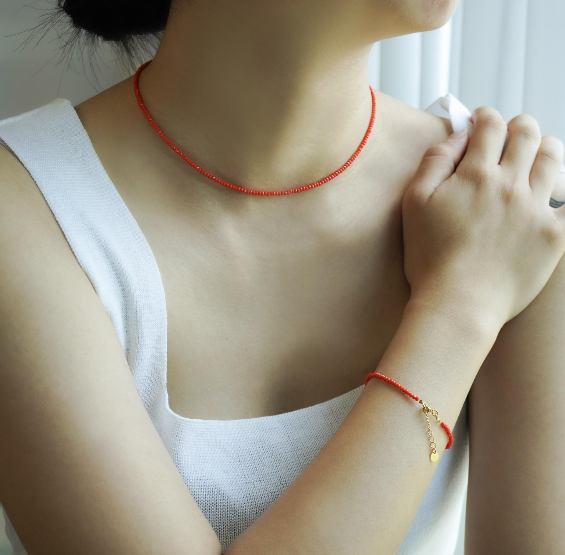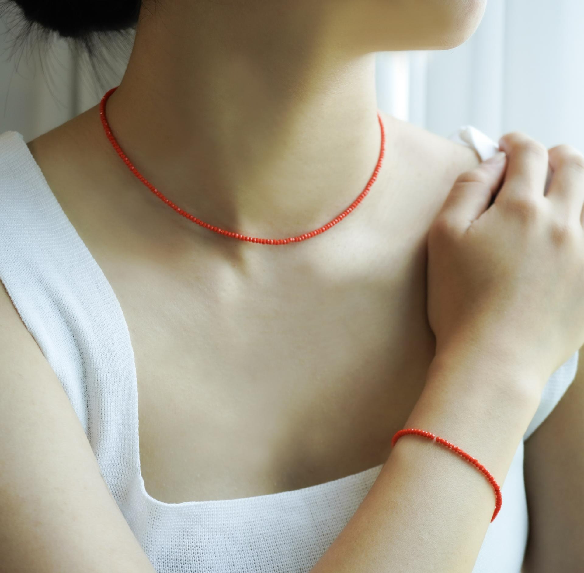 다홍 & 크리스탈 비즈